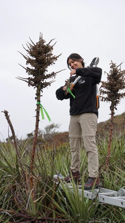 Además, la Puya chilensis mantiene una relación simbiótica con la mariposa del chagual (Castnia eudesmia), otra especie endémica cuyo ciclo de vida completo ocurre en esta planta. «Comprender qué sucede con la Puya implica también entender qué pasa con muchos otros organismos asociados a ella», enfatiza la investigadora.